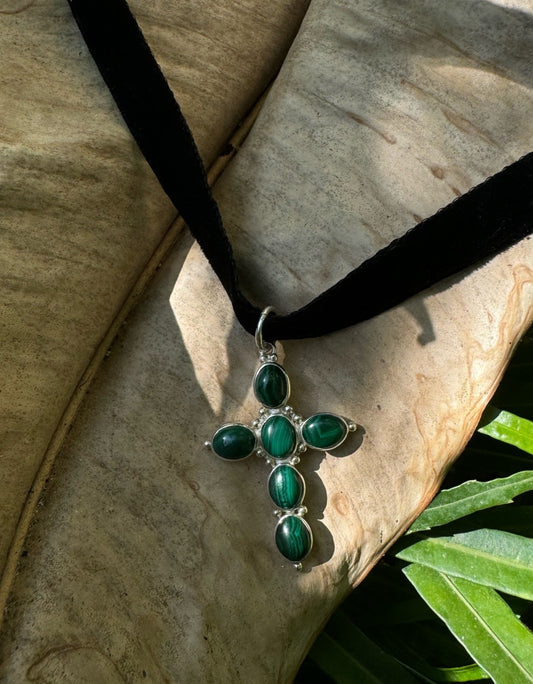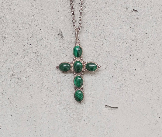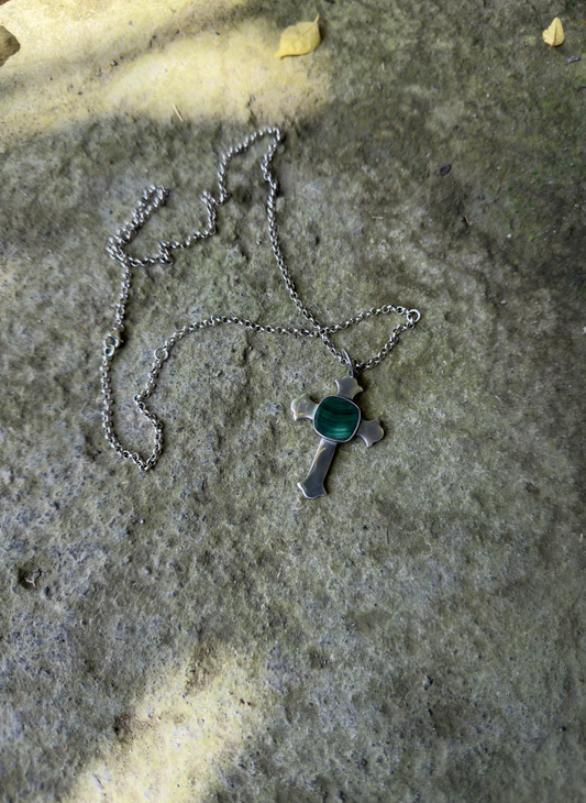 Unisex “Nora” malachite cross necklace