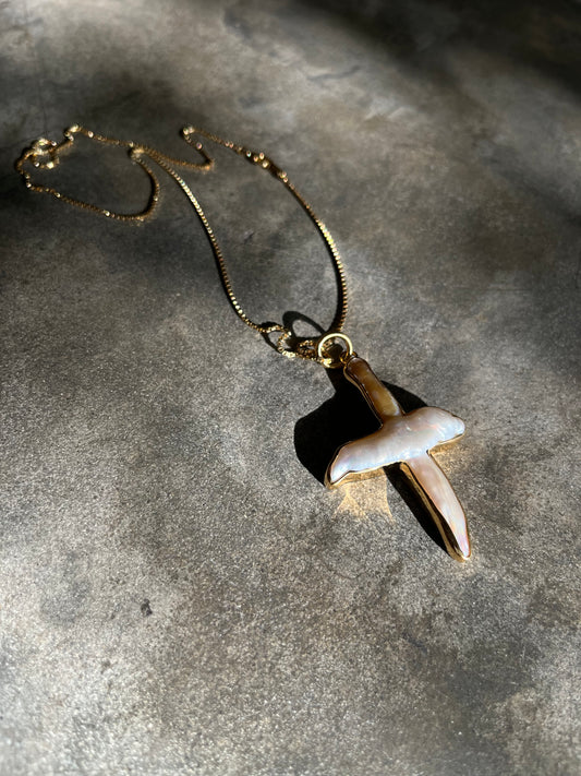 Unisex “Luka” vintage look pearl cross necklace