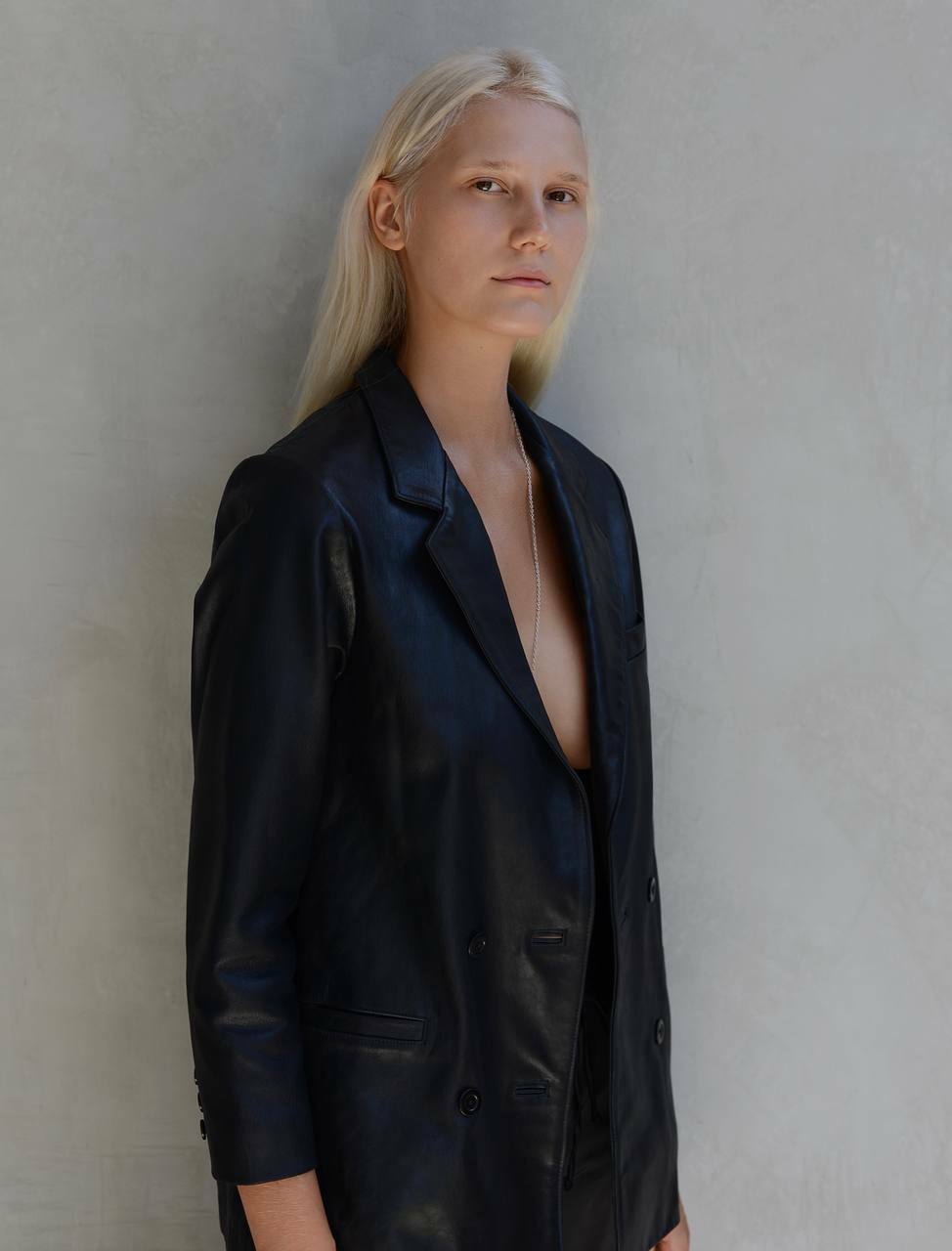 A timeless staple for every wardrobe. This long black leather jacket features a sleek design with front buttons and a hidden inner pocket. Made with a clean tailored fit, it adds effortless edge to both casual and dressy looks.
