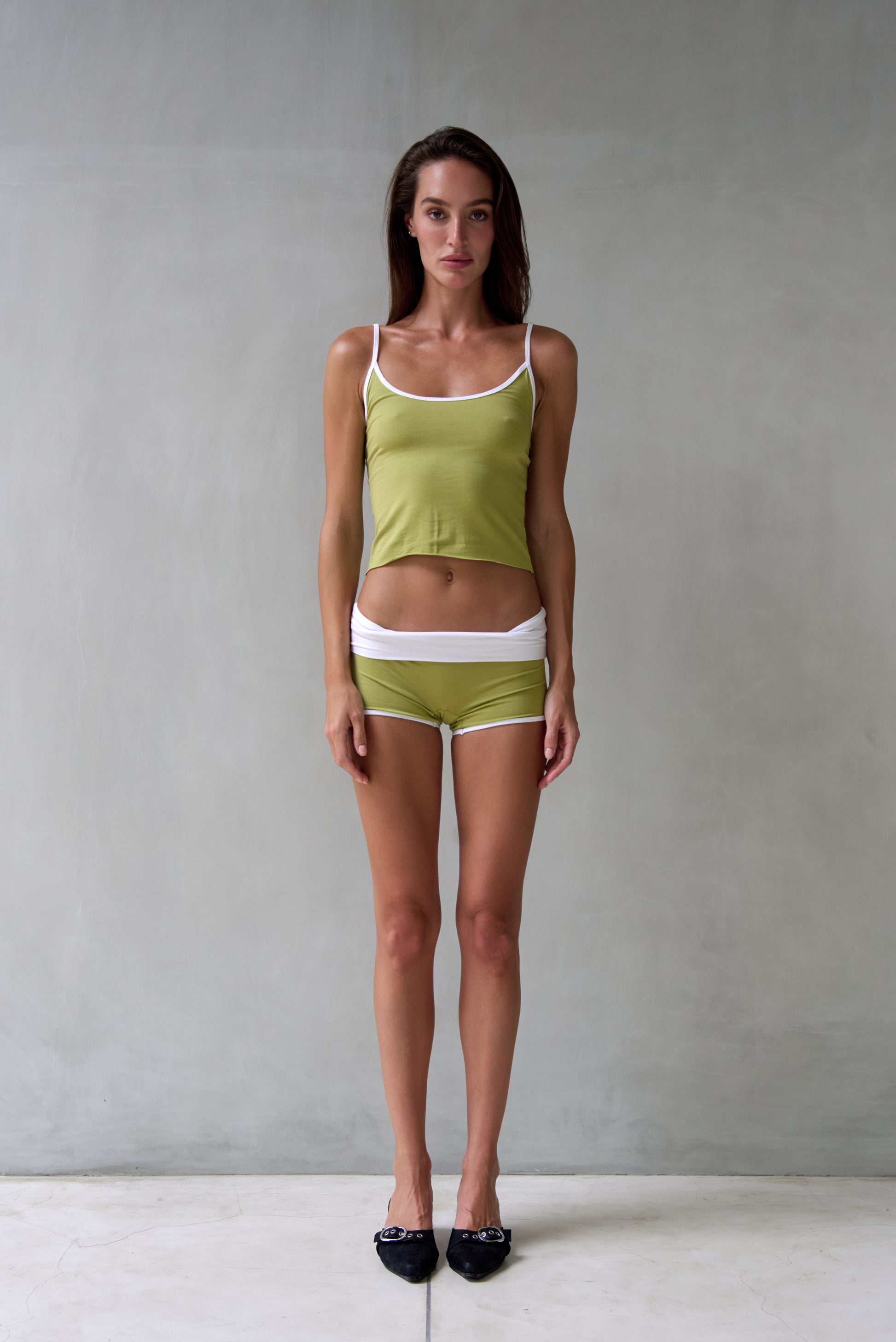 “Sore” raw edges tank top (matcha)