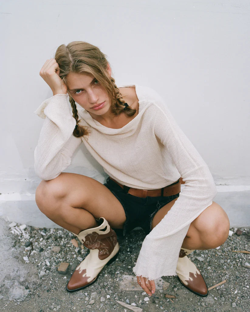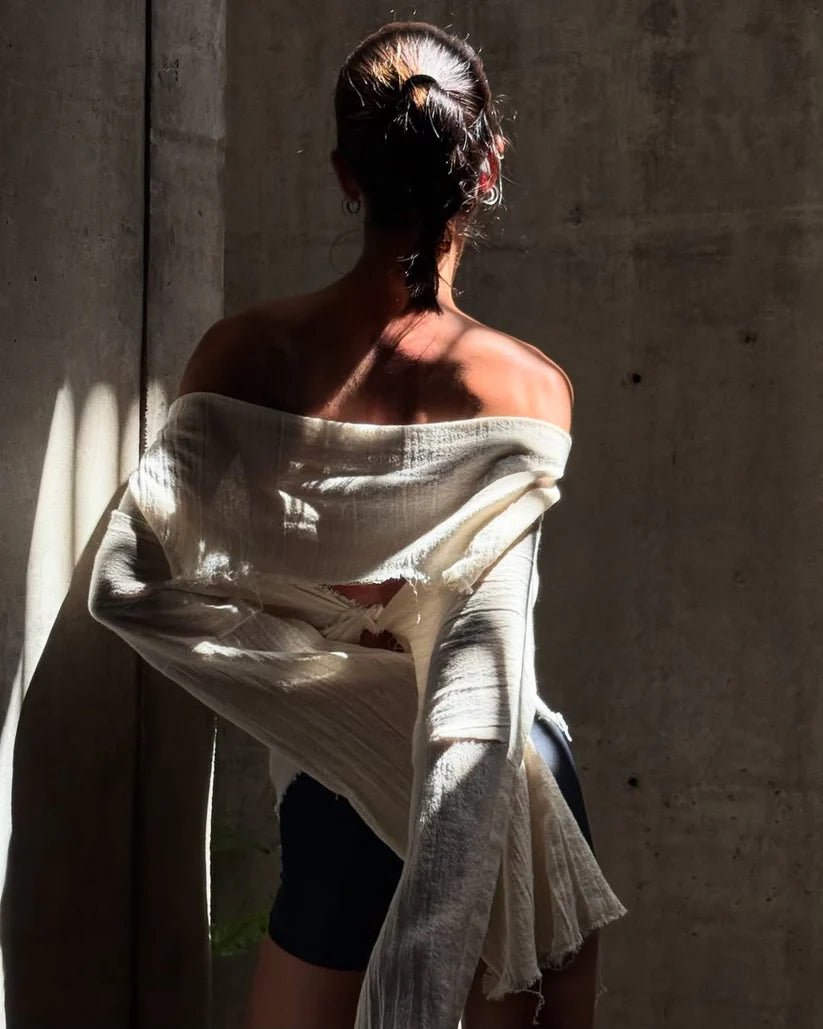 This long-sleeved cotton top balances simplicity and allure with a clean silhouette and an open-back design. Crafted from breathable, soft cotton, it’s a versatile piece that moves easily from day to night.