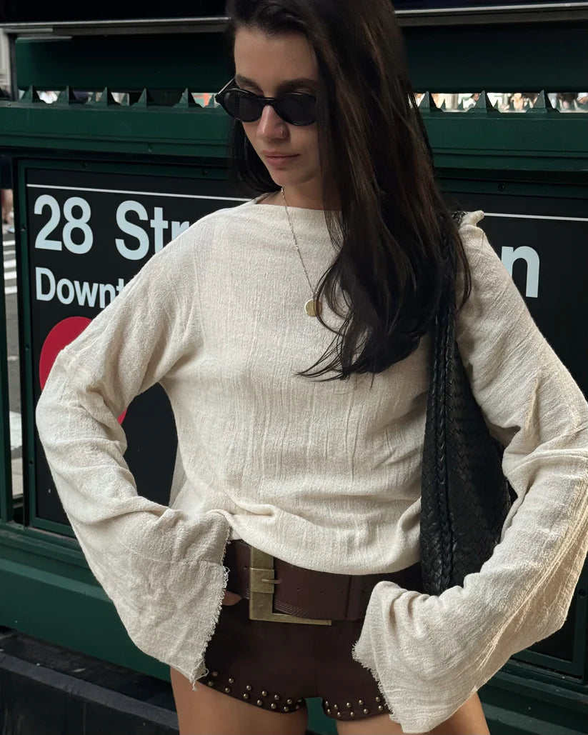 Cotton top with long sleeves in cream