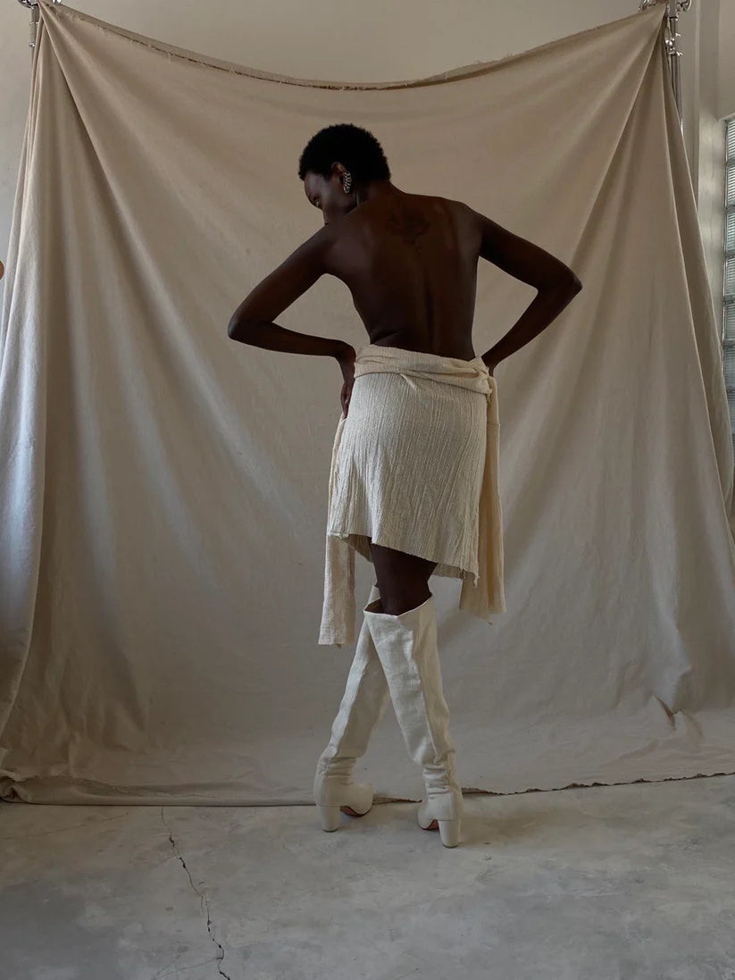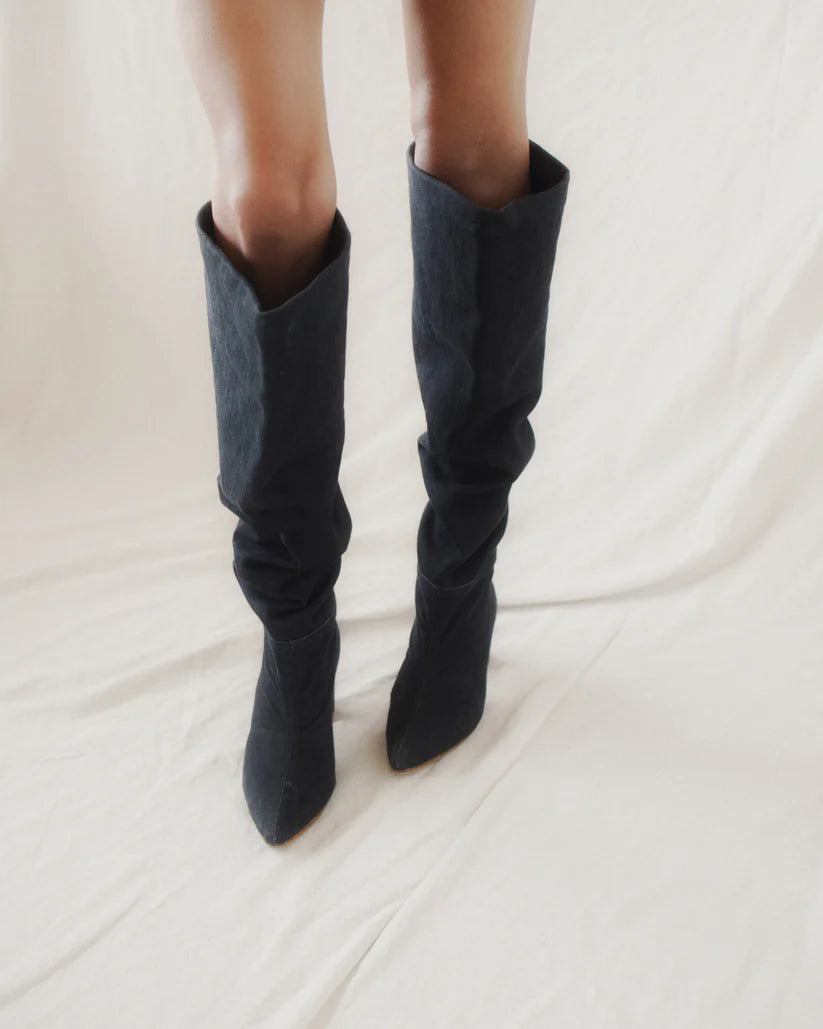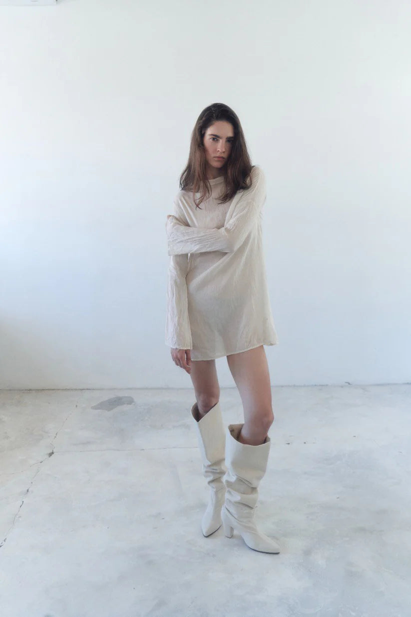 High boots with a comfortable 5 cm heel. Breathable material allows you to wear the shoes in hot weather. This model will visually lengthen your legs.Β Made in Bali