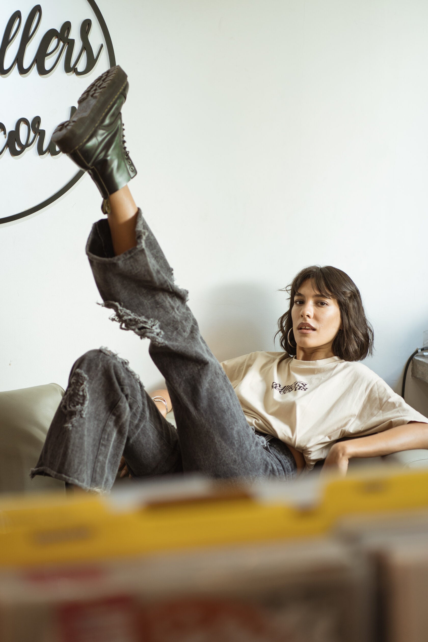 Step into the groove with our 70s-inspired Flared Jeans. These high-waisted beauties are crafted from premium cotton denim, featuring bold ripped detailing for that perfect vintage vibe. With a front button and zip fastening, these jeans are all about bringing back the free spirit and effortless cool of the disco era.